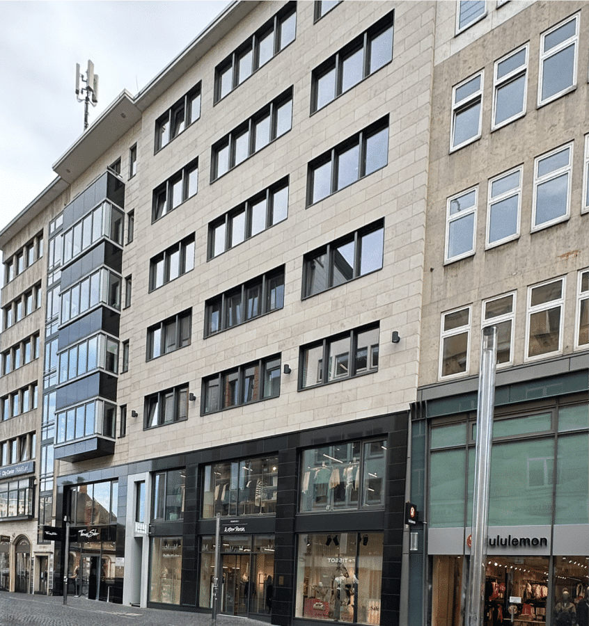 The office and commercial building is located in the heart of Frankfurt's city center, between Goetheplatz and Hauptwache. There is a wide range of dining and shopping options here. The Zeil, one of Germany's busiest shopping streets, is also just a 1-minute walk away. The Hauptwache S-Bahn and U-Bahn station is located directly in front of the building and offers excellent public transport connections.