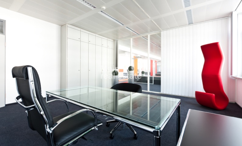 The well-maintained 4-storey office building impresses with its attractive atrium construction. The large atrium atrium extends over all four floors. A glazed pitched roof provides excellent natural lighting, which is optimized by a climate-sensitive shading system on the roof structure. The office floors are accessed via passenger elevators. The building is particularly suitable for open-plan and combined office use. The room layout will be adapted to the needs of the future user and a canteen will be available to tenants on the first floor.