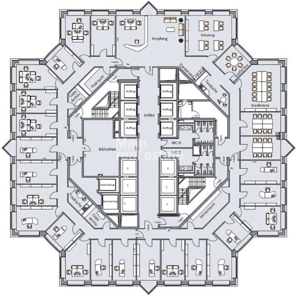 The Messeturm is known far beyond Germany and is an outstanding landmark of the city of Frankfurt with its distinctive base, slender height and striking pyramid-shaped top. With its imposing and timeless architecture, it is unique in Europe and gives its tenants special prestige and exclusivity. Since last year, extensive modernization measures have been taking place, including a new glass façade at the base of the building and an upgraded lobby. The renovation work will be completed in mid-2020. The 63 floors offer flexible floor plans ranging from individual offices to open-plan solutions.