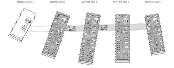 Built in 2004, the Westhafen Pier consists of five structures that were erected on a three-storey garage and can be partially connected to one another. Each of the entrance areas has a modern, high-quality design and is equipped with two passenger elevators. The diagonally arranged, large and openable windows on the office floors are all oriented towards the river. The fit-out of the spaces leaves nothing to be desired and offers, among other things, raised/cavity floors, ventilation with supportive cooling, BAP-compliant lighting as well as separate sanitary facilities and a kitchenette or lounge. All areas have a balcony and are bright and friendly thanks to their room height of approx. 3 m.