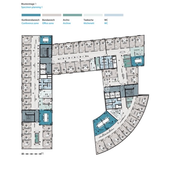 The 9-storey HAFENBOGEN office building was built at the end of 2019 and has a total office space of approx. 14,640 m². The prestigious architecture and high-quality interior design offer a modern working environment in an urban setting. The equipment details include: Cooling via concrete core activation, cavity/double floor, external electric sun protection and much more. Storage space is available in the basement if required.