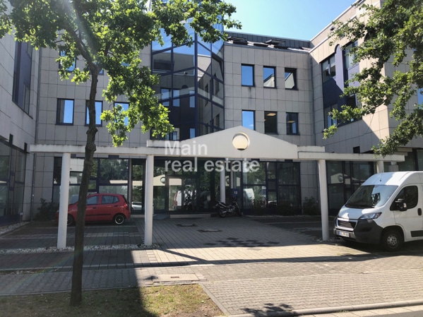 The building is centrally located in the commercial area and is very well connected to private transportation. The B486 federal highway takes you to the Langen / Mörfelden junction on the A5 motorway in approx. 2.5 km. There is a bus stop for line 663 in the immediate vicinity, with a connection to the Mörfelden S-Bahn station (S7). There are several restaurants and a business hotel belonging to the NH Hotel Group within walking distance.