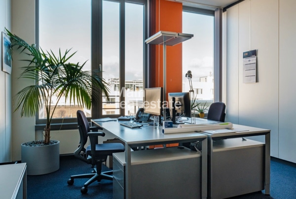 Das repräsentative Gebäude verfügt über insgesamt ca. 19.000 m² vermietbare Fläche. Die Fassade des 6-geschossigen Gebäudes wurde mit großen Glasflächen gestaltet. Die Eingangsbereiche sind einladend und hochwertig gestaltet. Diese Ausstattungsqualität setzt sich durch das gesamte Bürogebäude fort.Die Erschließung der Obergeschosse erfolgt über Personenaufzüge. Zu den Ausstattungsdetails zählen u.a.: Bauteilkühlung, außenliegender Sonnenschutz, moderne Sanitäranlagen, BAP-gerechte Beleuchtung u.v.m. Ein weiteres Highlight sind die Dachterrassen, die von den Mietern genutzt werden dürfen. In der hauseigenen Tiefgarage stehen ausreichend Stellplätze zur Anmietung zur Verfügung.